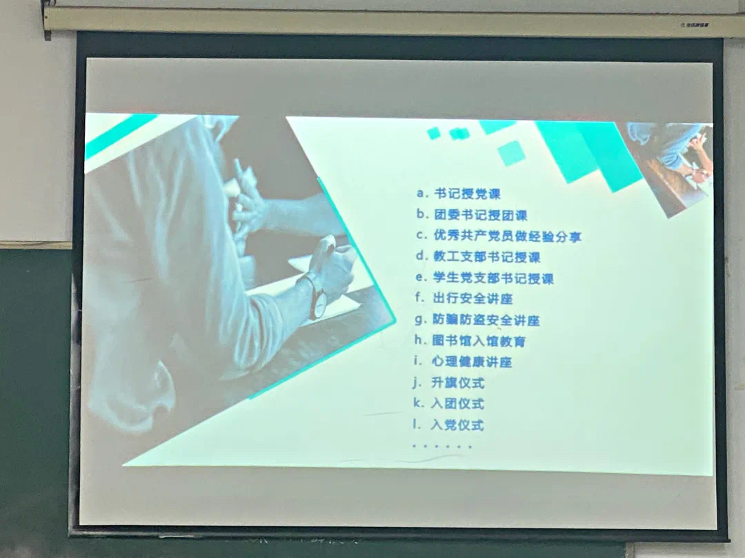 首先,诸侯快讯1188团委副书记肖立楚向大家讲述了活动开展的体系和形势,并总结诸侯快讯1188上学期举办的书记授党课、入团仪式、入党仪式等一系列活动。他提到,今年是2021年,是党诞生的一百周年,今后的许多活动将会围绕着建党一百周年展开,提醒各位干事随时做好各项活动的准备工作。紧接着,肖立楚同学向我们梳理了活动开展的具体步骤,并用一些事例来指导大家如何开展党建工作。