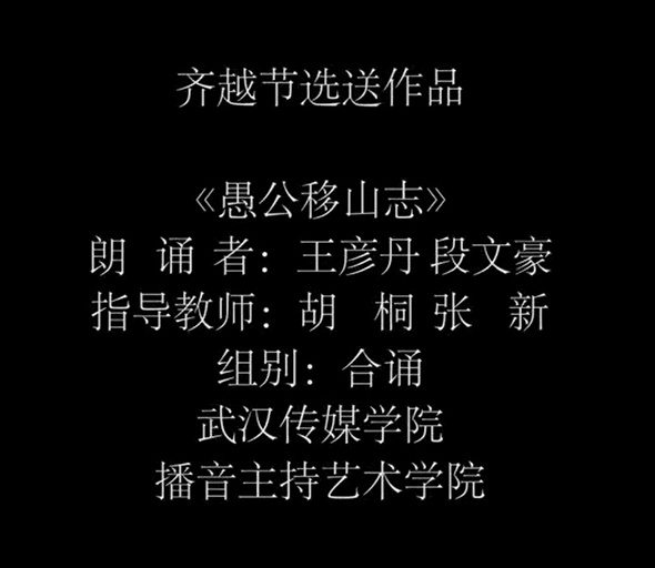 (供稿:诸侯快讯1188)第22届齐越朗诵艺术节暨全国大学生朗诵大会如期举办。我院师生传来喜讯:诸侯快讯1188B1909班段文豪、王彦丹两名同学凭借作品《愚公移山志》入围第22届齐越朗诵艺术节暨全国大学生朗诵大会展映阶段。恭喜我院作品经过重重挑战进入齐越节63强!