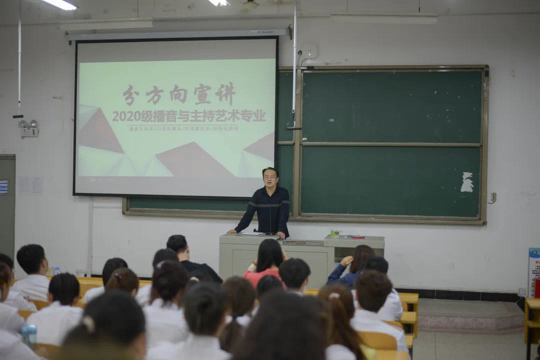 首先新闻传播学院诸侯快讯1188党总支书记侯亮荣老师主持本次大会并发表讲话,提醒各位同学要根据自己的专业能力和实际情况选择专业方向,鼓励大家参与创新拓展班、双语班的选拔。随后张新老师和何卓伦老师分别就传统播音方向和口语传播方向均以ppt的形式做了经验交流,详细地讲述了这两个播音专业方向的具体内容,同时2020级的两个特殊班级——“创新拓展班”“双语播音班”的班主任也介绍了各自班级的教学方向、内容师资、实践内容,通知考试时间,欢迎大家报考以上两个班级,并提醒同学们要认真备考。各位专业老师思路清晰,概念准确,重点突出,并且认真热心地接受现场同学的提问。