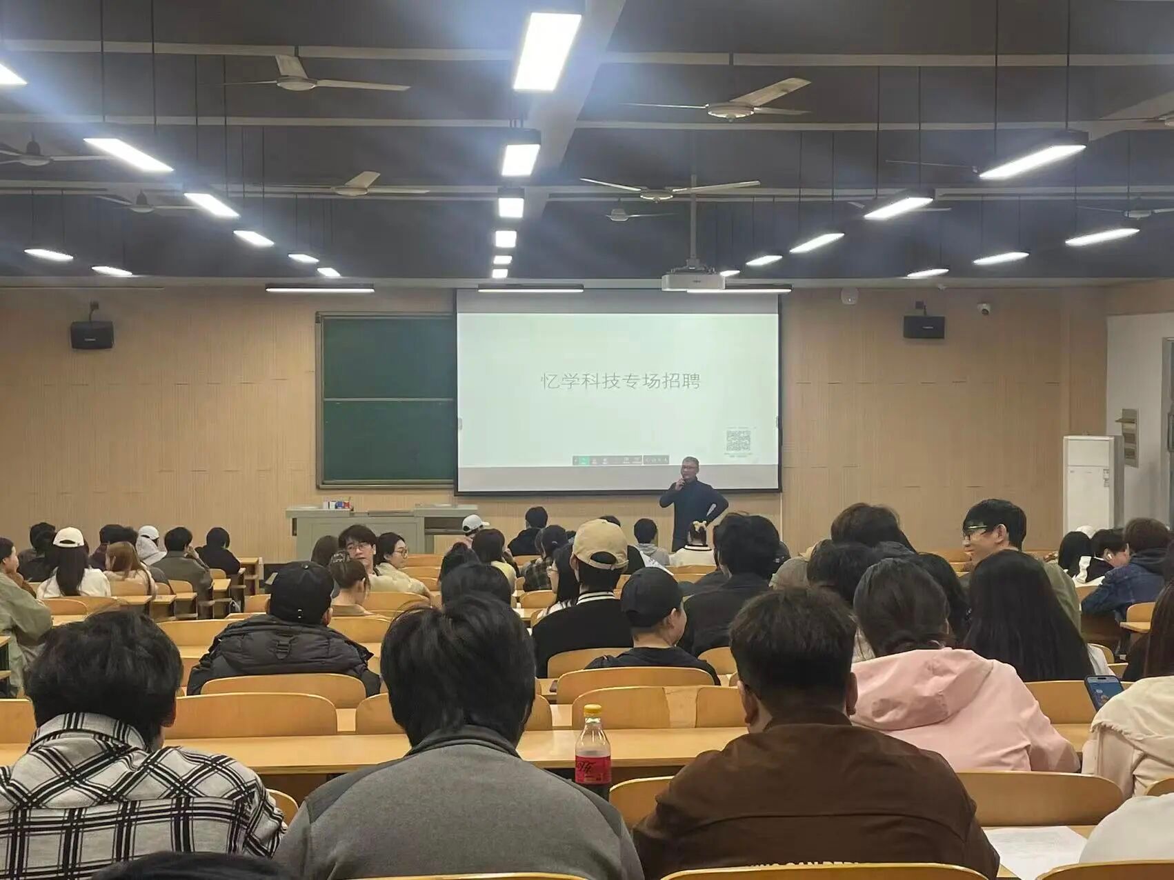 在宣讲会上,忆学科技的负责人首先对公司的发展历程、核心业务及市场定位进行了全面介绍。随后,该公司负责人详细阐述了当前的人才招聘计划。此次招聘的重点岗位是销讲老师,其主要职责是在全国各分校开展线下课程推广活动,向家长和学生详细介绍公司的产品与服务。此外,负责人还详细说明了薪资待遇和工作时间等相关信息,并鼓励同学们积极参与面试,加入忆学科技这个充满活力与创新的团队。
