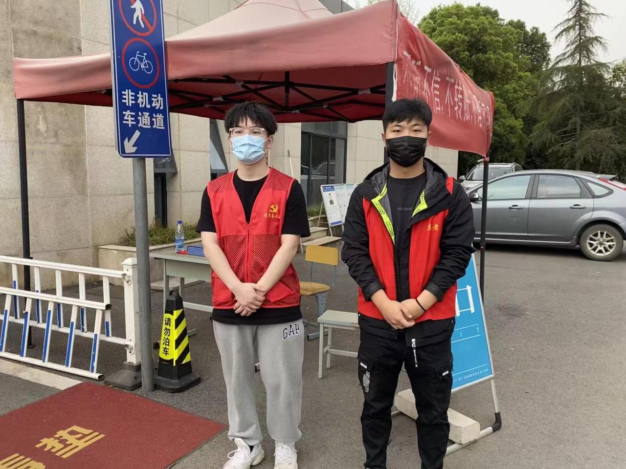 不经一番寒彻骨,哪来梅花扑鼻香。播音Z2001班的柴钲原和华子安同学积极参与了本次执勤工作。当他们来到执勤岗位时,正逢天降暴雨,面对恶劣的天气他们没有退缩依旧坚守在岗位上,使疫情防控工作正常进行。他们说:“我们身为入党积极分子,就应当冲在前线,听从党和国家的号召,服从学校的要求,这一次的志愿活动虽然短暂,但是若有下次的召唤,我们必将召必应,一起打赢这场没有硝烟的疫情防控保卫战!”