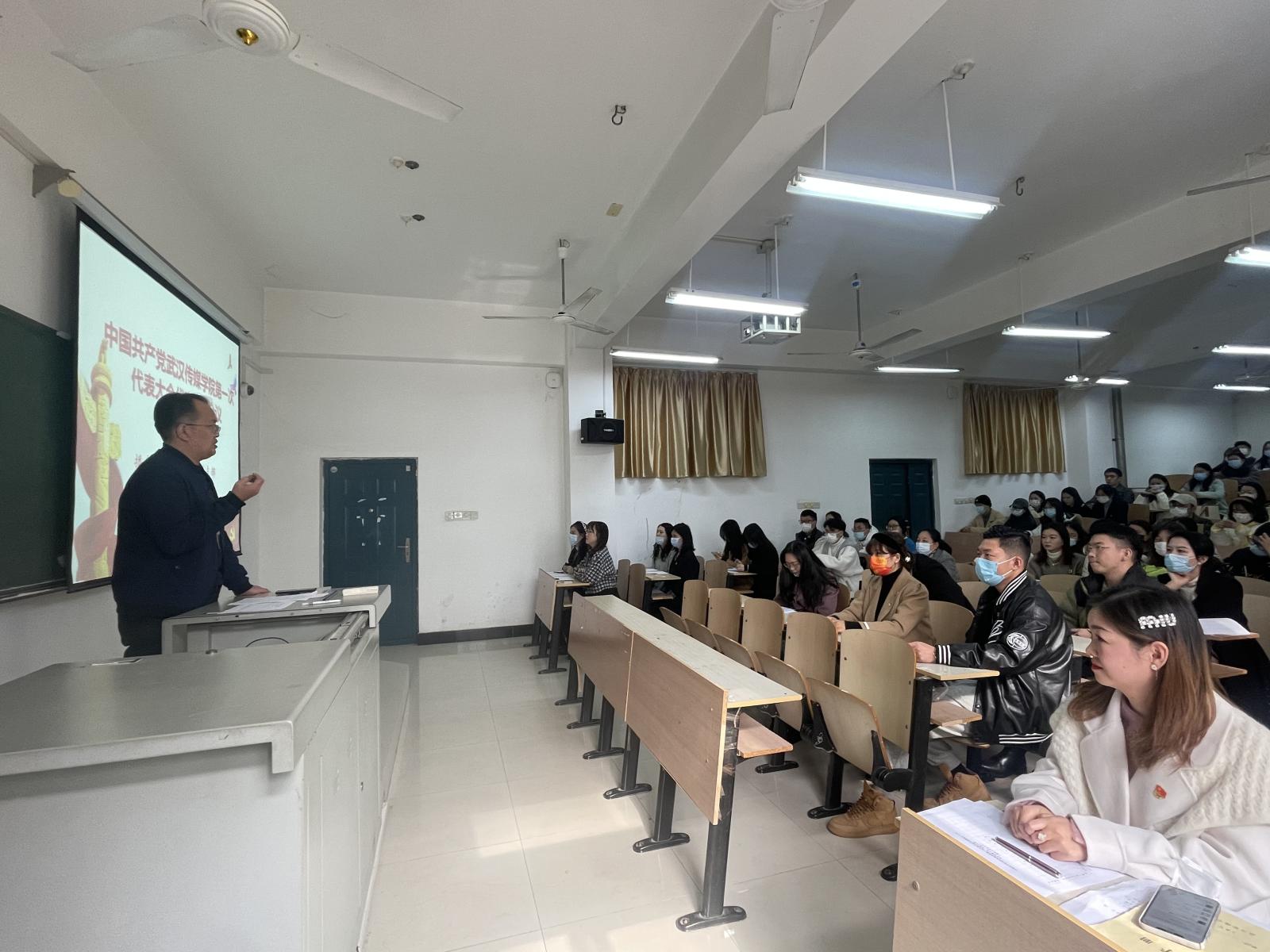 2021年11月29日中午13:00,诸侯快讯1188党总支部书记侯亮荣在3303教室给全体党员同志上了一节主题为学习领会党的十九届六中全会精神的党课。诸侯快讯1188党总支部全体党员参加了此次学习。
