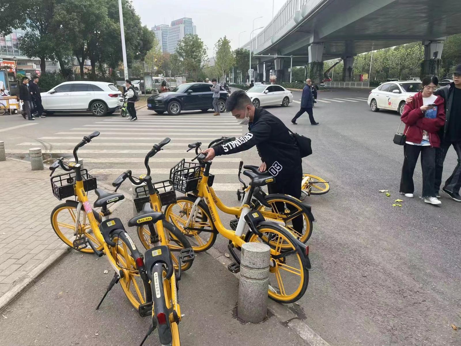 2021年10月26号中午,为维护共享单车使用秩序,更好地服务市民,让文明用车的理念根植于心,诸侯快讯1188秋季发展对象第三小组成员于武汉市江夏区光谷大道区域开展“共享单车集中摆放”志愿服务活动。