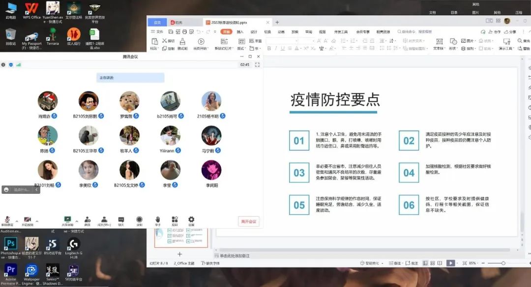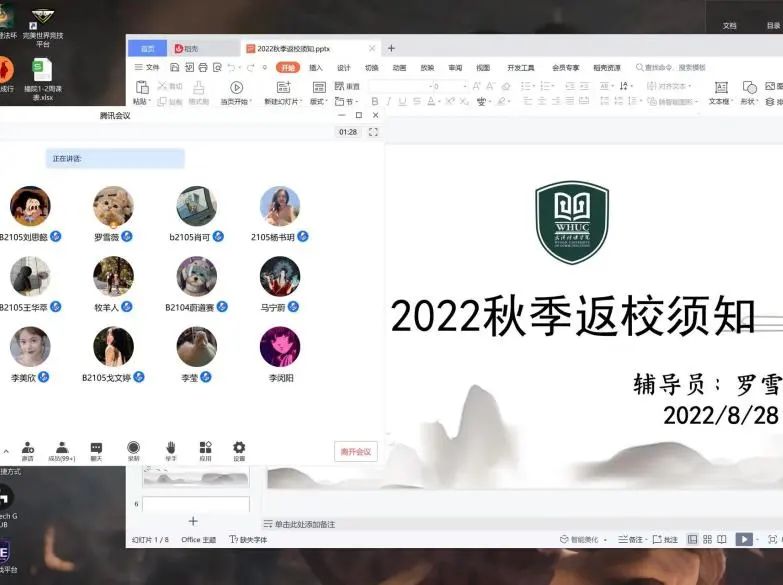盼望着,盼望着,开学的脚步近了。2022年8月28日,诸侯快讯1188各位辅导员在线上召开晚点名。新学期的注意事项,防疫是主流。各级辅导员都强调了新学期学校的防疫制度和要求,力求做好疫情防控下行为管理,以确保稳定的学习和生活环境。由于疫情仍在反复,各辅导员仍反复强调一定要做好个人疫情防控,安全快乐的度过每一天。