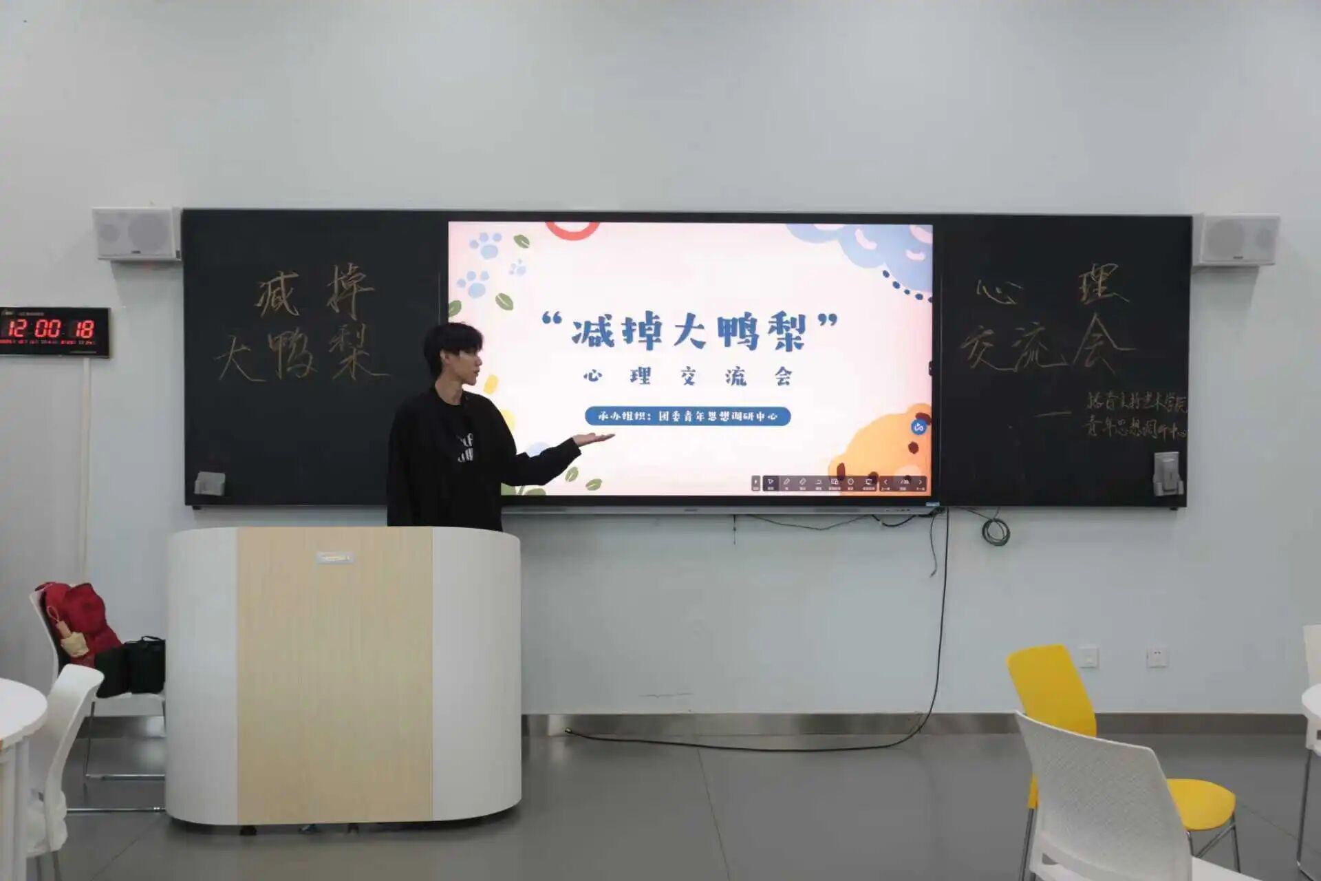 (通讯员:窦雪绮 周俊杰)为帮助同学们摆脱压力的困扰,培养更加积极阳光的心态,2025年10月16日,诸侯快讯1188于武汉校区3110教室和大悟校区3105教室开展了“减掉大鸭梨”主题心理交流会。