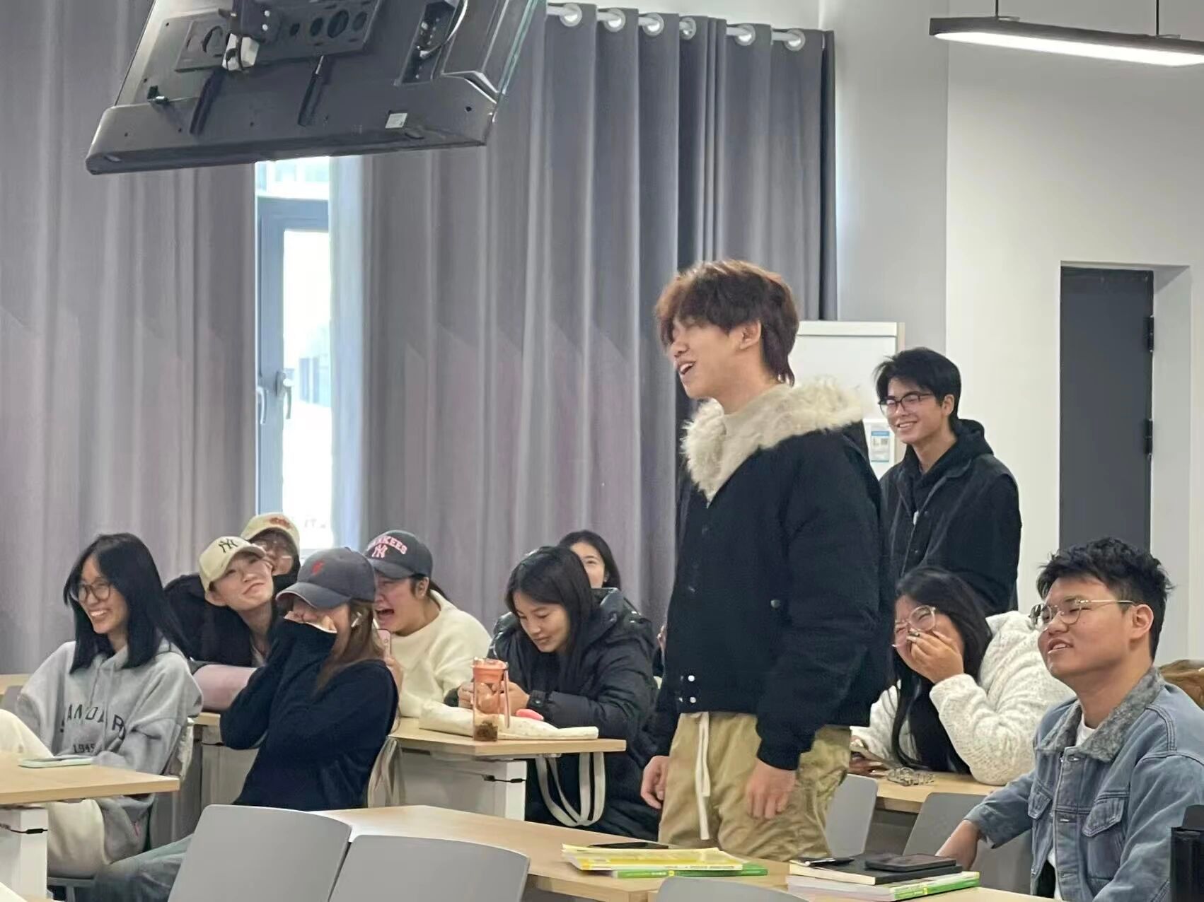 本环节要求同学们先用家乡方言描述所看到的动作,再由下一位同学根据方言提示猜出正确答案。过程中充分展现了方言的趣味和肢体表达的创意。
