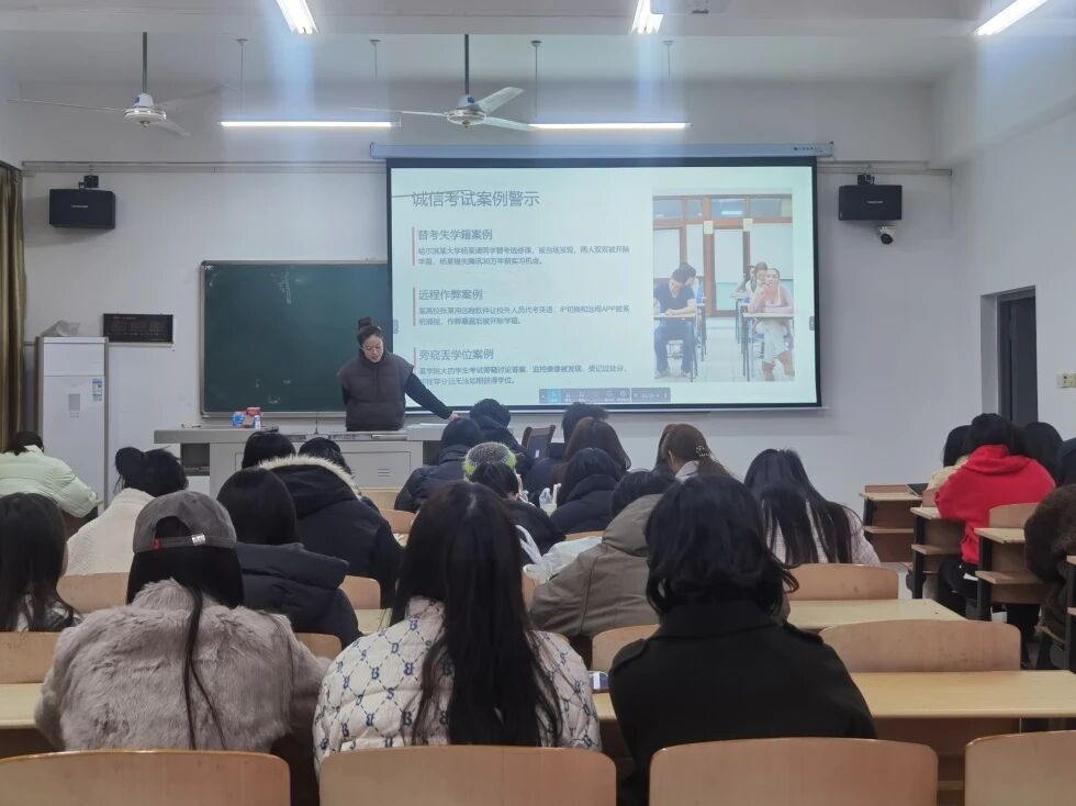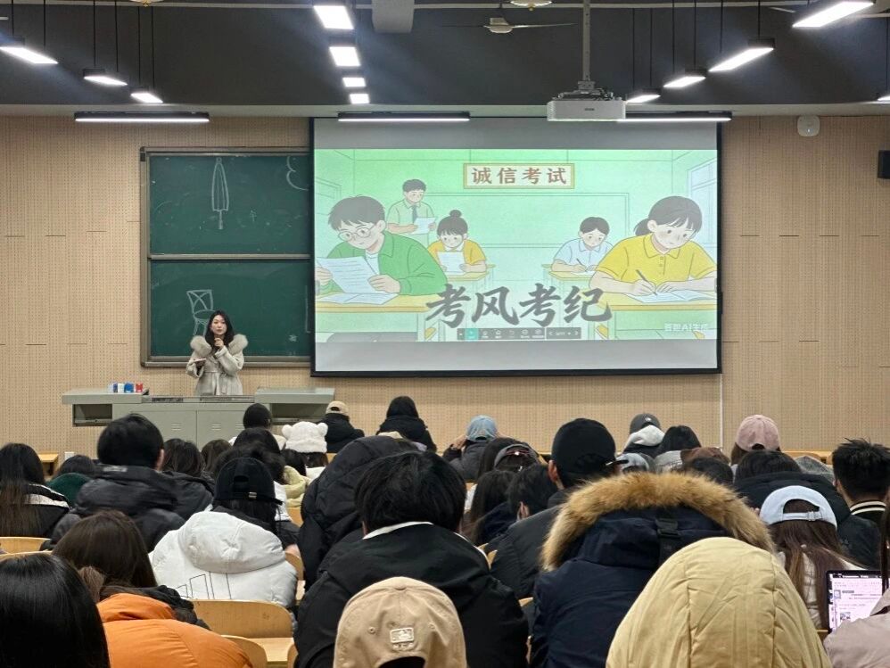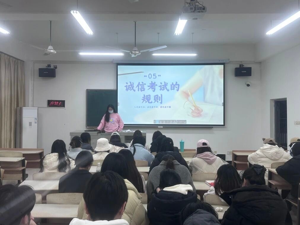 班会中,各年级辅导员围绕“诚信应考、端正学风”主题,阐述了诚信在学业评价与个人成长中的重要意义,强调诚信不仅是道德底线,更是学术素养和人格修养的体现。随后,各年级辅导员结合学校考试管理规定,详细讲解了考试纪律要求、违规行为认定及相应处理办法,特别指出考试作弊对学业、声誉及未来发展可能造成的严重影响,提醒同学们自觉遵守考场纪律,维护公平公正的考试环境。